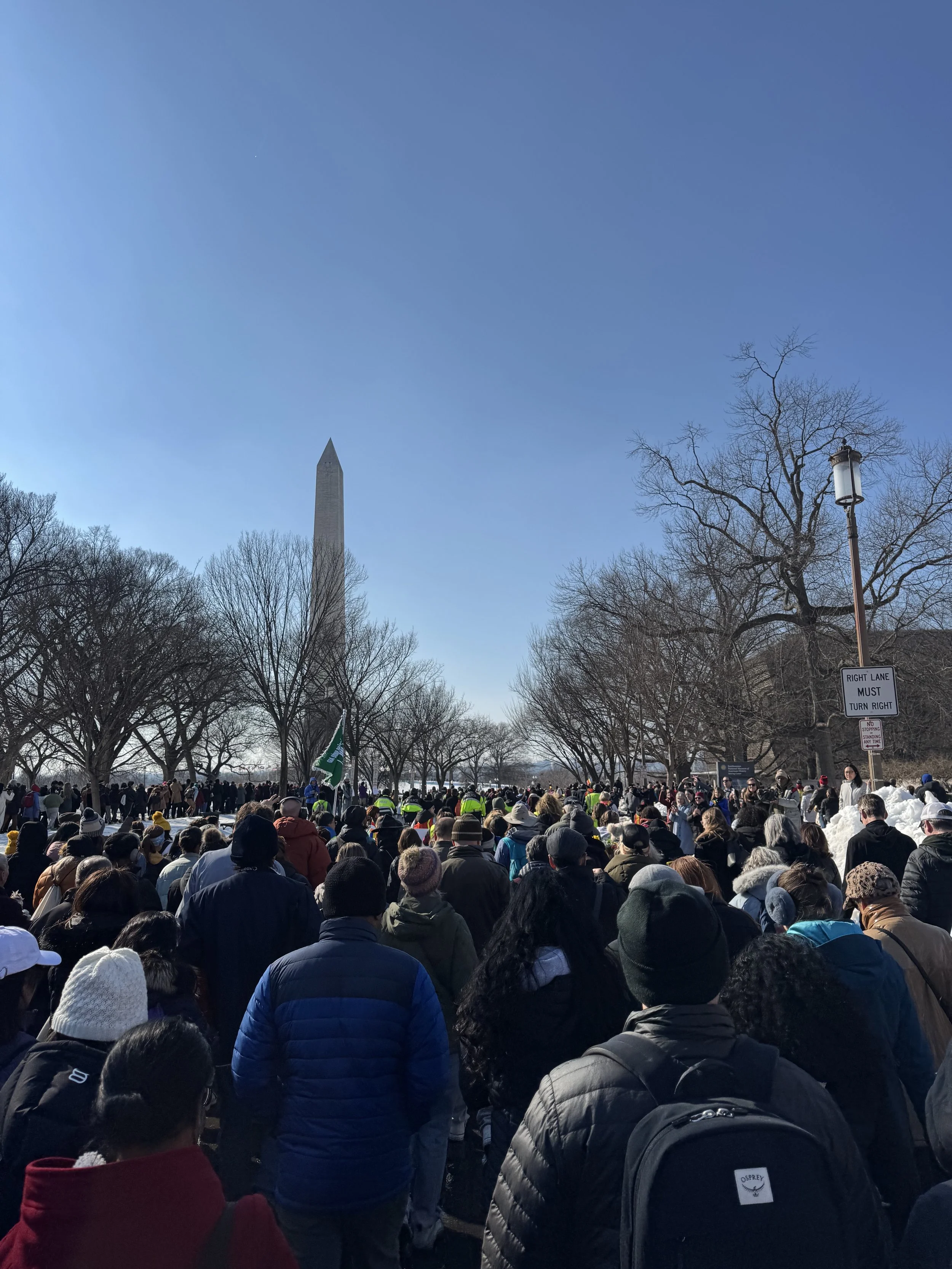 View form the Lincoln Memorial February 11th 2:30 p.m. as people are gathering to hear the speeches honoring the Walk for Peace monks.