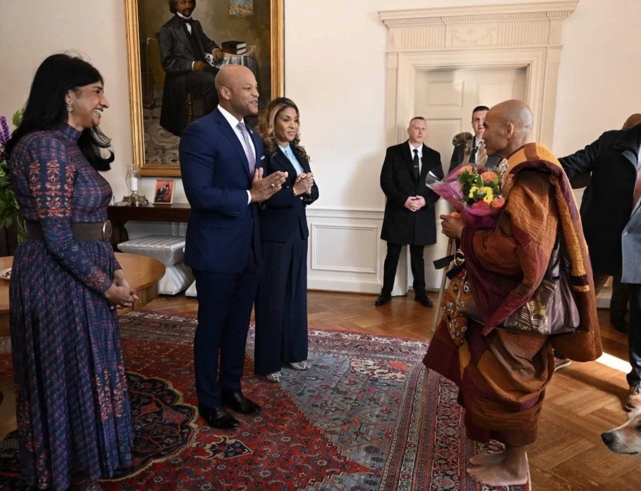 Bhikkhu Paññākāra meeting Governor Wes Moore and Lt. Governor Aruna MIller