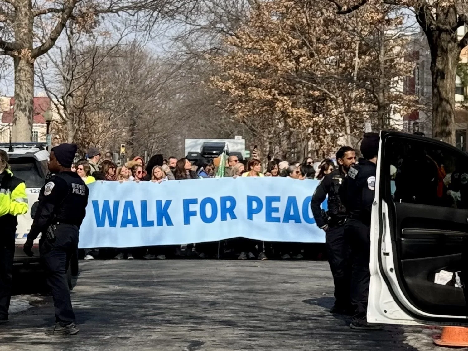 We followed the monks down Embassy Row, and it was as if the world itself stepped out to greet them. Embassy staff from country after country stood outside waving national flags and smiling in welcome. One after another. It felt like the whole world had come to witness this walk for peace.