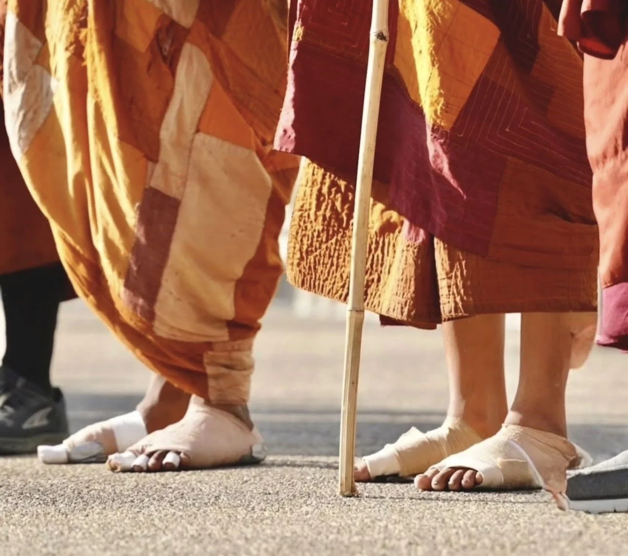 People whispered “thank you” or called it out loud. The monks did not change. They simply walked, calm and steady. And fast!